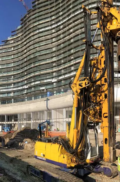 - Installation of piles for the building foundation